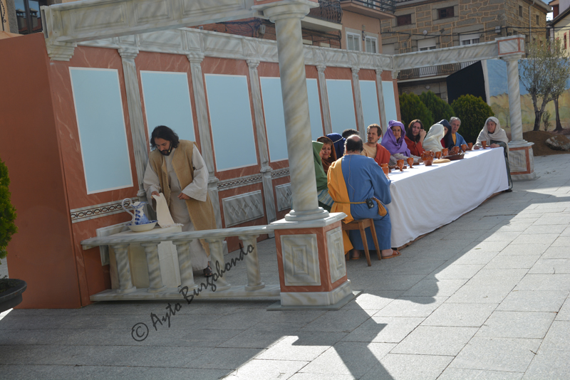 El día 14 de abril,  Domingo de Ramos ha sido momento elegido para escenificar las Estampas de la Pasión en una cita que comenzó a las 18:00 horas en la Plaza Mayor, lugar donde se  ven cuatro escenarios. Gran parte de la representación se produce en este lugar debido a que la plaza es como un anfiteatro donde el público puede sentarse y ver la escenificación cómodamente.